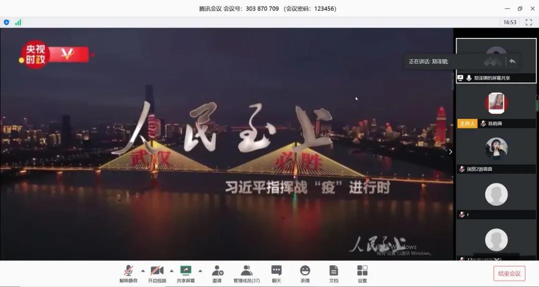 2020年4月28日星期三晚上八點(diǎn),國貿(mào)學(xué)院黨總支第二黨支部在騰訊會(huì)議平臺(tái)開展了“同心戰(zhàn)疫,同屏共振”組織生活會(huì),參加本次會(huì)議的有國貿(mào)學(xué)院黨總支第二黨支部書記劉偉鑫老師、國貿(mào)學(xué)院黨總支黨建小組指導(dǎo)老師陳曉薇老師以及國貿(mào)學(xué)院全體學(xué)生黨員。