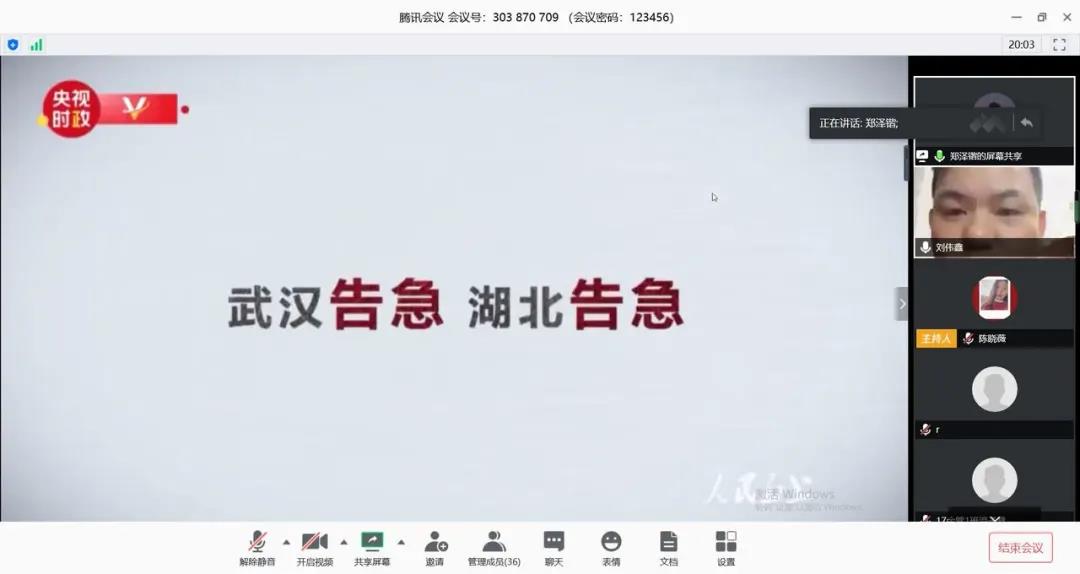 劉偉鑫老師分享了自己的感受的同時(shí)也提醒了同學(xué)們:作為一名學(xué)生黨員,我們應(yīng)該堅(jiān)決擁護(hù)黨的領(lǐng)導(dǎo),不忘初心,牢記使命,萬眾一心,眾志成城,只要堅(jiān)定信心、同舟共濟(jì)、科學(xué)防治,我們才能打贏疫情防控阻擊戰(zhàn)。