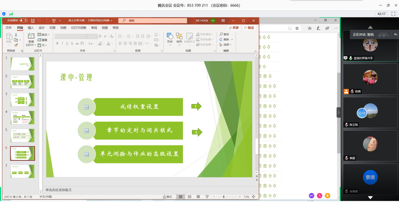 會上,隗波揚副院長首先代表學(xué)院部署了本學(xué)期的工作。謝慧琪老師根據(jù)自己親身教學(xué)經(jīng)驗向大家分享了超星平臺教學(xué)以及網(wǎng)絡(luò)教學(xué)小技巧,楊金玲老師根據(jù)自己所教學(xué)的校級精品在線課程《英語寫作》,在會議上分享了釘釘、超星等平臺教學(xué)經(jīng)驗以及具體如何通過軟件錄課。尤前前老師分享了自己的考證課程網(wǎng)絡(luò)教學(xué)經(jīng)驗。莫令航老師則向大家介紹了雙語課程網(wǎng)絡(luò)課程教學(xué)經(jīng)驗。
