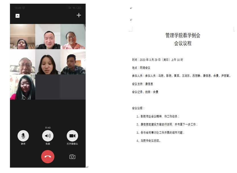 為貫徹學(xué)校關(guān)于網(wǎng)絡(luò)課程建設(shè)工作推進(jìn)會(huì)會(huì)議精神,落實(shí)網(wǎng)絡(luò)教學(xué)常態(tài)化的制度建設(shè),把網(wǎng)絡(luò)教學(xué)中的課程建設(shè)工作貫徹落實(shí)、落細(xì)、落地。同時(shí)進(jìn)一步明確和完善網(wǎng)絡(luò)教學(xué)課程建設(shè)相關(guān)工作,管理學(xué)院及時(shí)于2020年3月29日上午10點(diǎn)通過(guò)微信視頻方式召開(kāi)了網(wǎng)絡(luò)課程建設(shè)工作布置會(huì)議,管理學(xué)院馬林院長(zhǎng)、彭柳副院長(zhǎng)、校內(nèi)教學(xué)副主任康信恩老師、各系主任及教學(xué)線老師參加了本次會(huì)議。