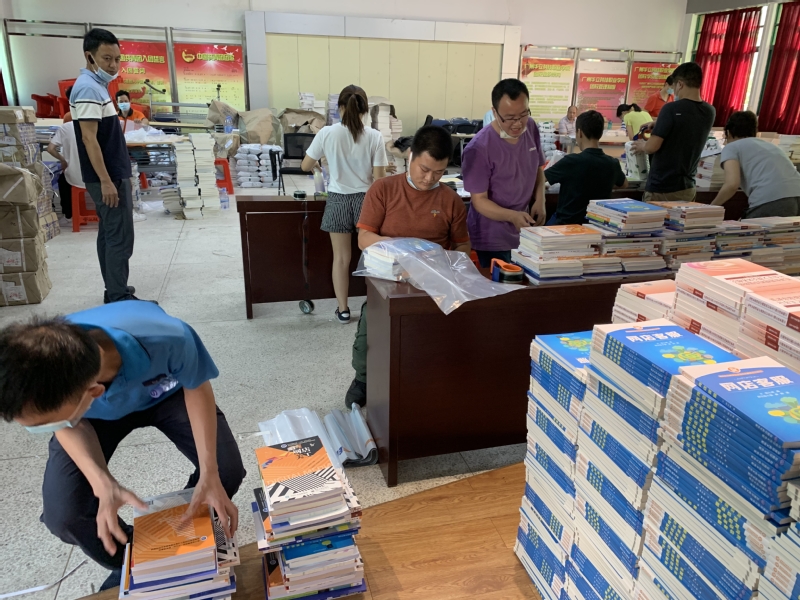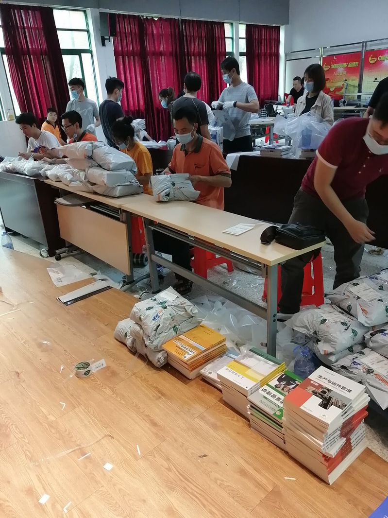 在疫情期間,我院遵照教育部門(mén)及學(xué)校的要求,及時(shí)開(kāi)展了網(wǎng)絡(luò)教學(xué)工作。為充分保證學(xué)生線上學(xué)習(xí)的效果,最大限度降低疫情對(duì)教育教學(xué)和學(xué)生學(xué)習(xí)的影響,學(xué)校與郵政快遞公司合作,為疫情期間不能返校的學(xué)生及時(shí)郵寄了全部教材。5月14-16日三天,在教務(wù)處統(tǒng)一安排下,我院領(lǐng)導(dǎo)高度重視,組織安排了四線主任唐濤、王映麗、李遠(yuǎn)興、康信恩,以及居住在增城附近的汪蔚、黃英、韋玉、趙林創(chuàng)老師參與了學(xué)生教材的分揀、打包、郵寄工作,將線上教學(xué)需要使用的學(xué)習(xí)、教材、資料及時(shí)送到學(xué)生手中。