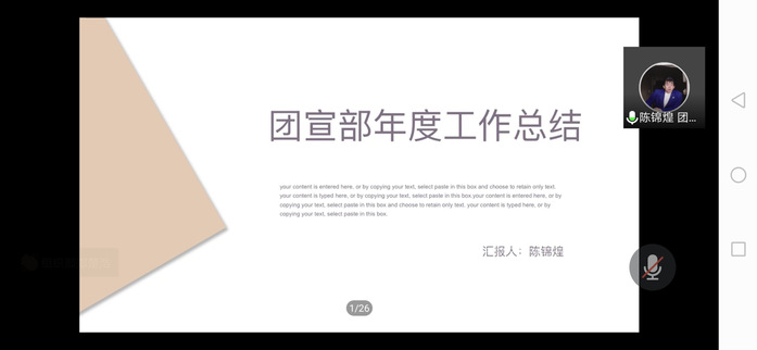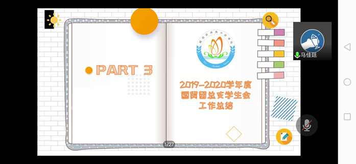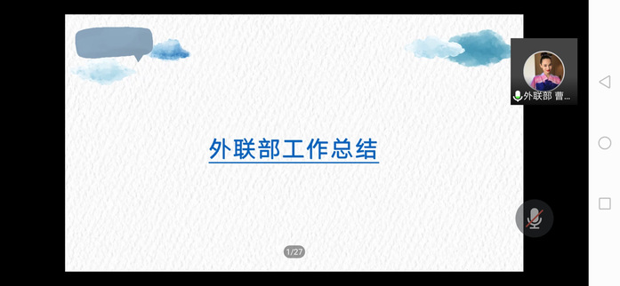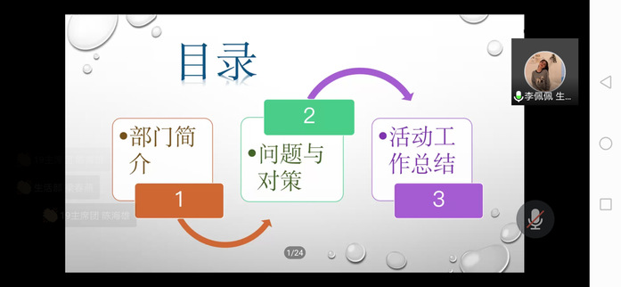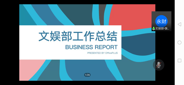 接下來,由十四個部門依次對本學(xué)年做出工作總結(jié)。他們介紹了部門職能、本學(xué)期工作回顧、工作成果和展望未來,同時他們也指出了部門在接下來需要改進(jìn)之處與對部門的美好祝愿。希望新一屆部門負(fù)責(zé)人可以青出于藍(lán)而勝于藍(lán)!