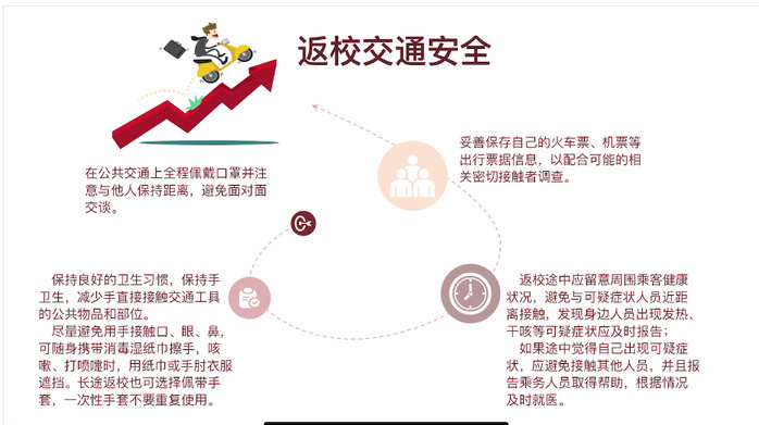 接著,陳權(quán)豐書記為我們講述了返校交通安全的問題,他告訴學(xué)生們在公共交通上要全程佩戴口罩,避免面對面交談,要保持良好的衛(wèi)生習(xí)慣。長途返??蛇x則佩帶手套,一次性手套不要重復(fù)使用。重點(diǎn)告訴學(xué)生要妥善保存自己的火車票、機(jī)票等,如果途中覺得自己出現(xiàn)可疑癥狀,應(yīng)避免與其他人接觸,并且告知乘務(wù)人員取得幫助。