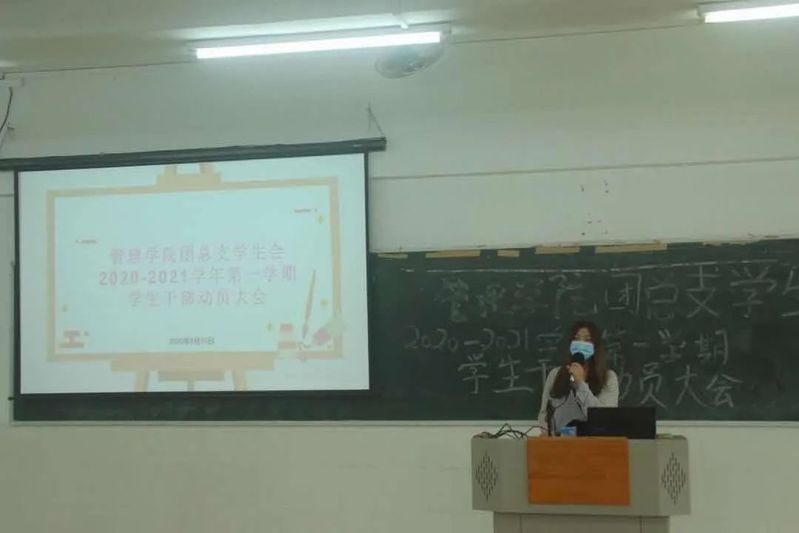 隨后管理學(xué)院團總支陳媛書記講述了有關(guān)團學(xué)工作的注意事項,并強調(diào)了在團學(xué)工作中學(xué)生與老師之間溝通的重要性,希望在新的學(xué)期里大家能團結(jié)一致、相互配合。