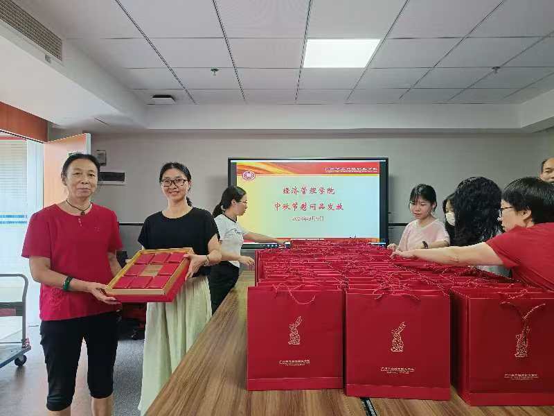 經(jīng)濟(jì)管理學(xué)院副院長梁慧貞為教師送上中秋節(jié)禮物