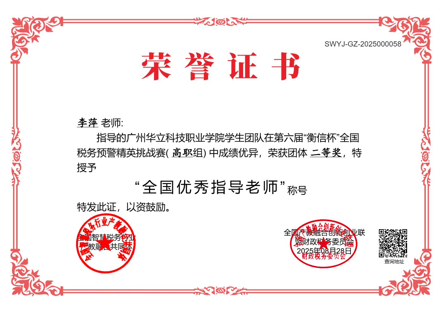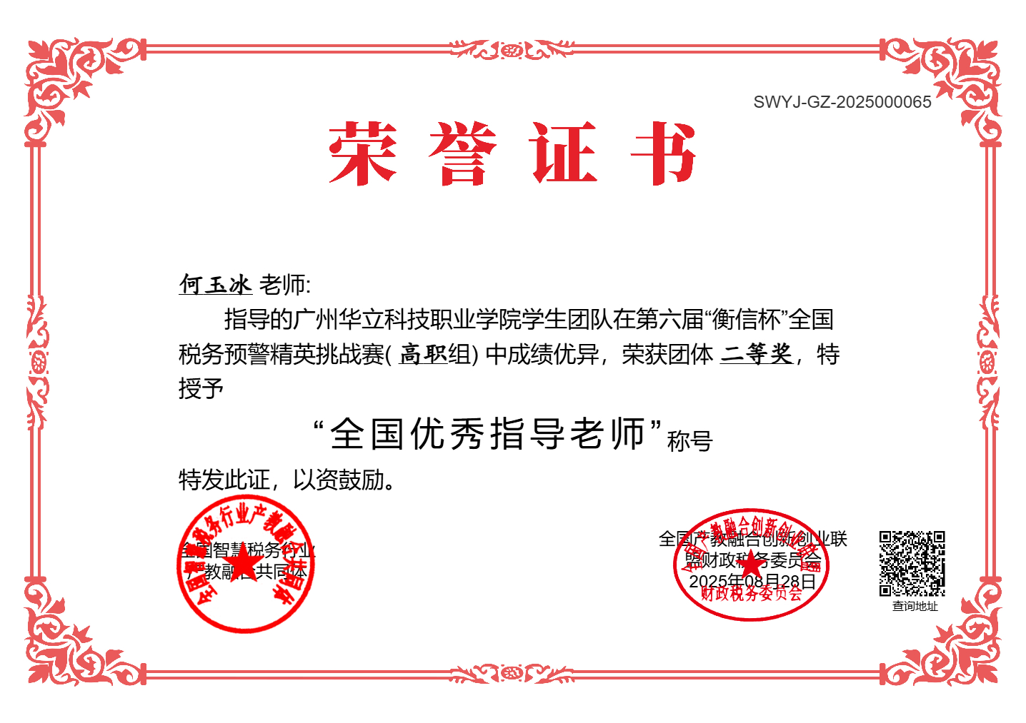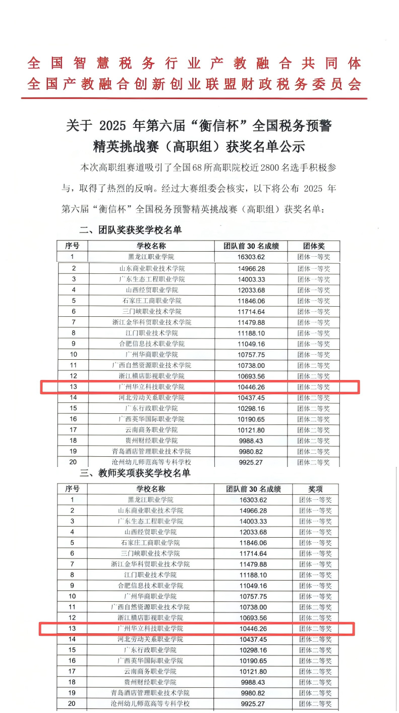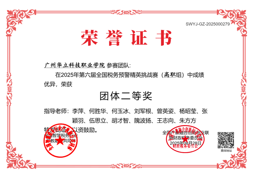 經(jīng)過2025年8月1日至22日長達22天賽程,第六屆全國稅務(wù)預警精英挑戰(zhàn)賽(高職組)成功舉辦,經(jīng)管學子在本次大賽中喜獲團體二等獎!。本次大賽吸引了來自全國68所高職院校的近2800名選手同場競技,共同角逐財稅領(lǐng)域的專業(yè)榮譽。