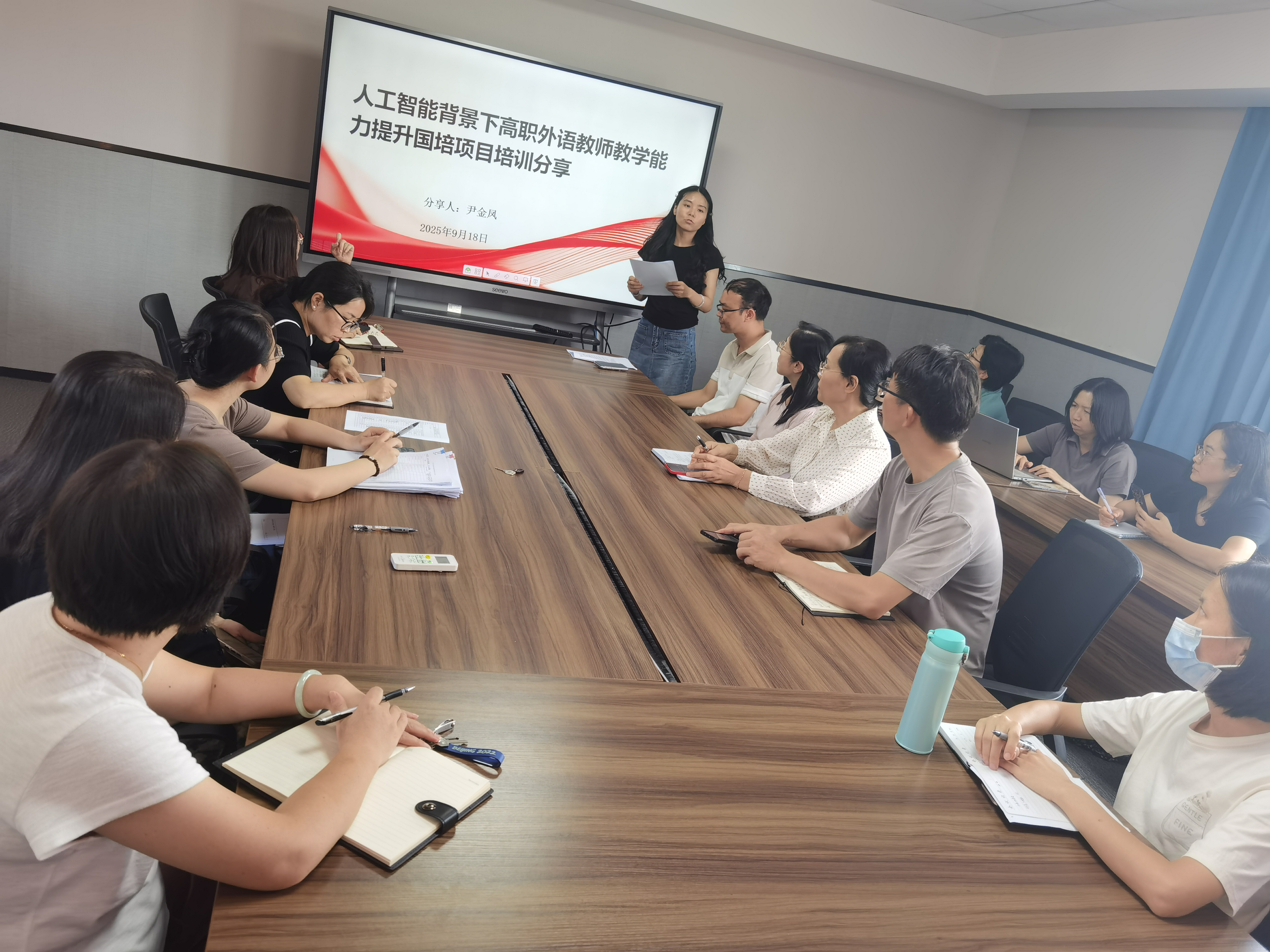尹金鳳老師以“人工智能背景下高職外語教師教學能力提升”為主題,分享了在新課標引領(lǐng)下,如何通過項目式學習、大單元教學等方式,將學科核心素養(yǎng)真正落實到課堂的每一個環(huán)節(jié),讓學習真實發(fā)生,引發(fā)了在場教師的深深共鳴。