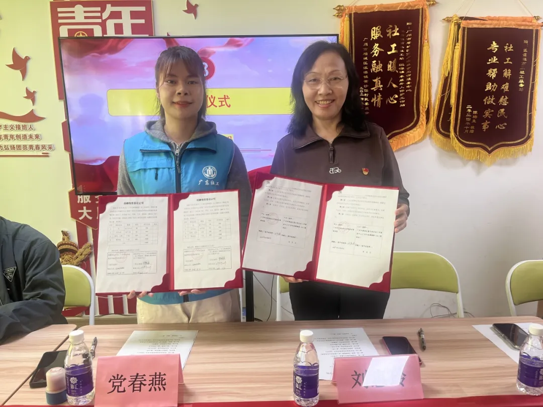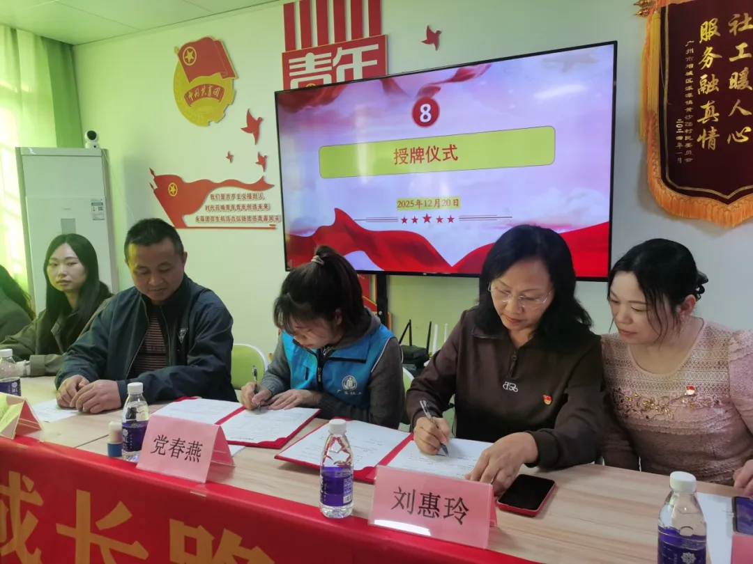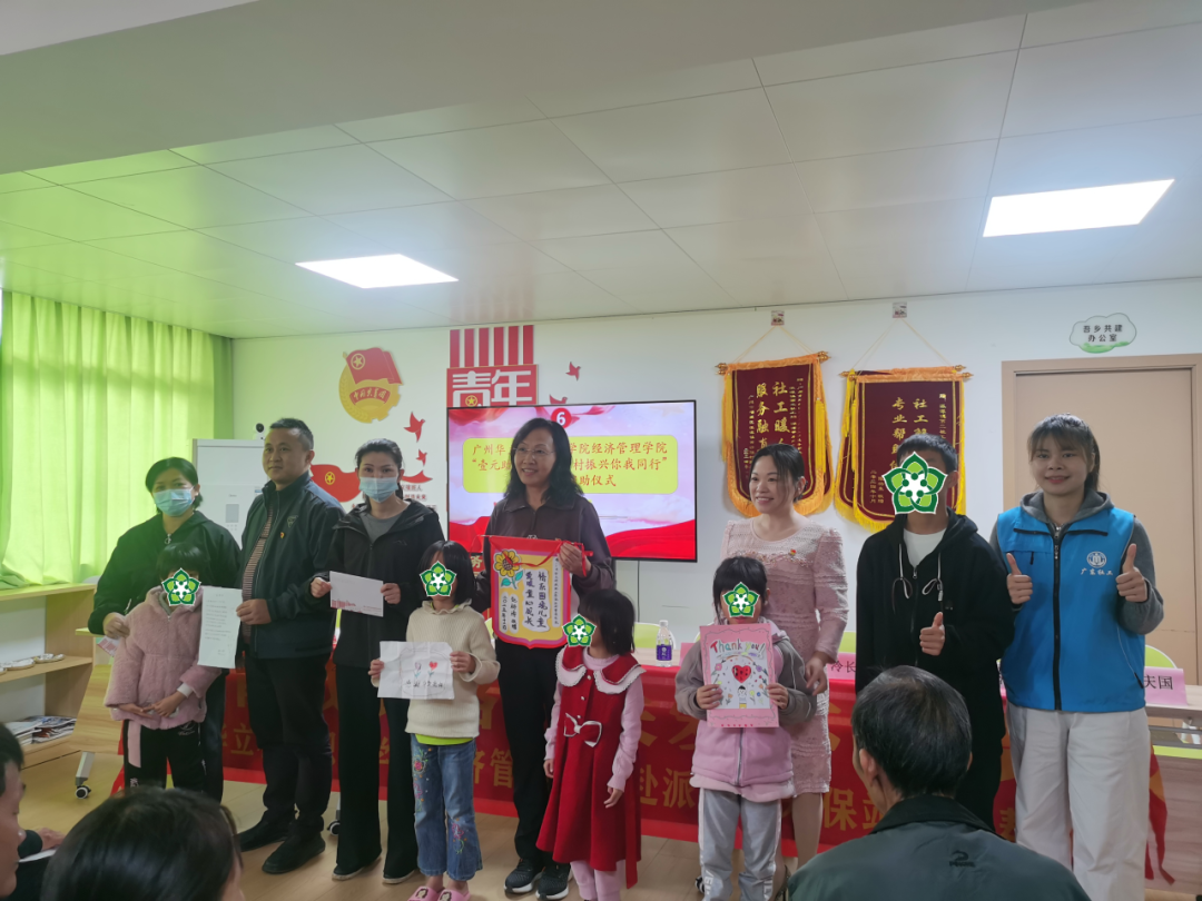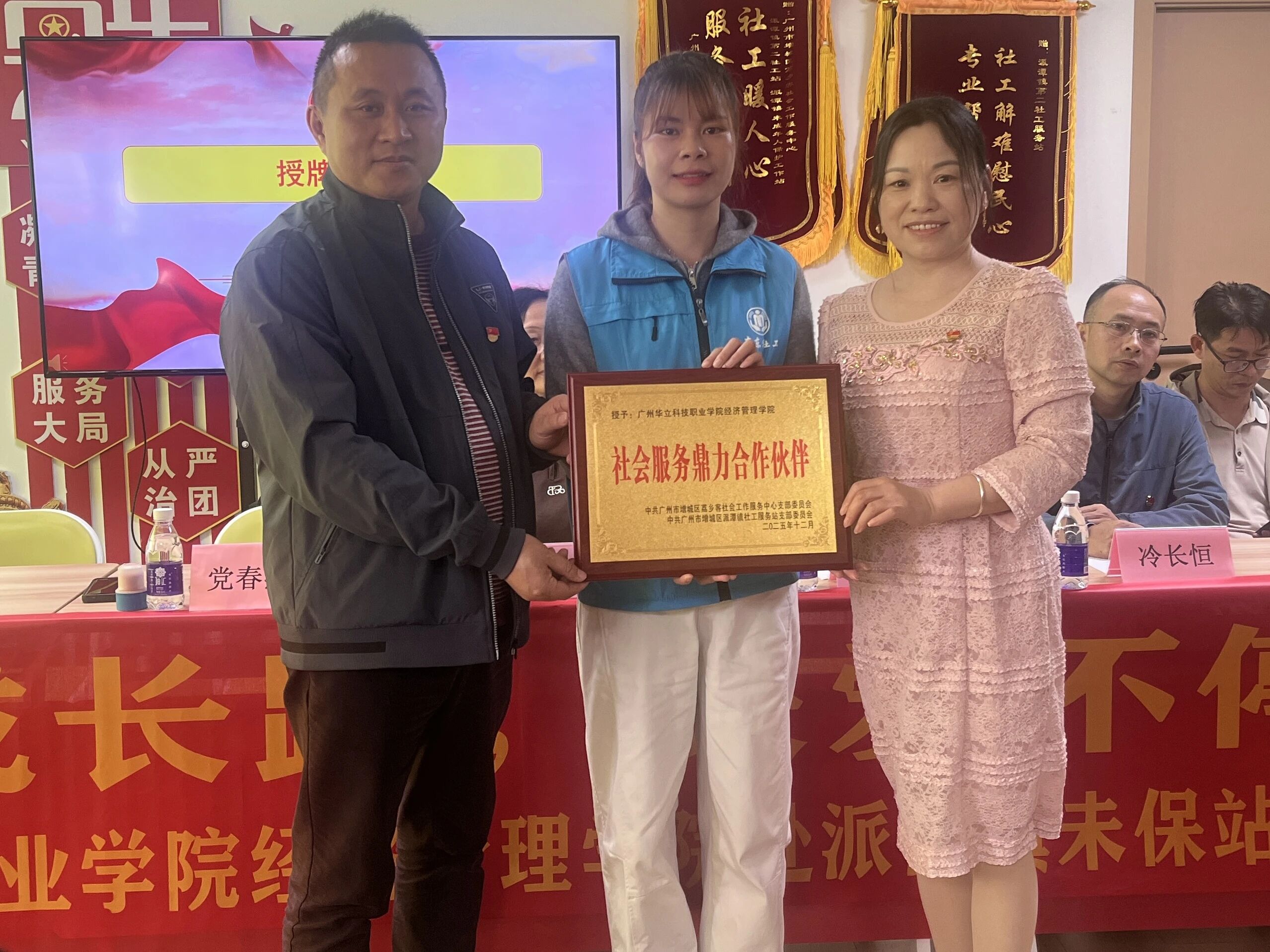 隨后,愛心傳遞步入正式環(huán)節(jié)。經(jīng)濟(jì)管理學(xué)院黨總支書記、院長劉惠玲作為捐贈方代表,與受贈方代表、派潭鎮(zhèn)第二社工服務(wù)站主任黨春燕鄭重簽署捐贈協(xié)議,將幫扶的承諾落到實(shí)處。生活學(xué)院院長李春洪、經(jīng)濟(jì)管理學(xué)院副院長朱向平從黨春燕主任手中接過“社會組織鼎力合作伙伴”榮譽(yù)授牌。這枚授牌不僅是對學(xué)校公益行動的認(rèn)可,更象征著校社攜手關(guān)愛困境兒童的責(zé)任傳遞,彰顯了高校服務(wù)社會的使命擔(dān)當(dāng)。