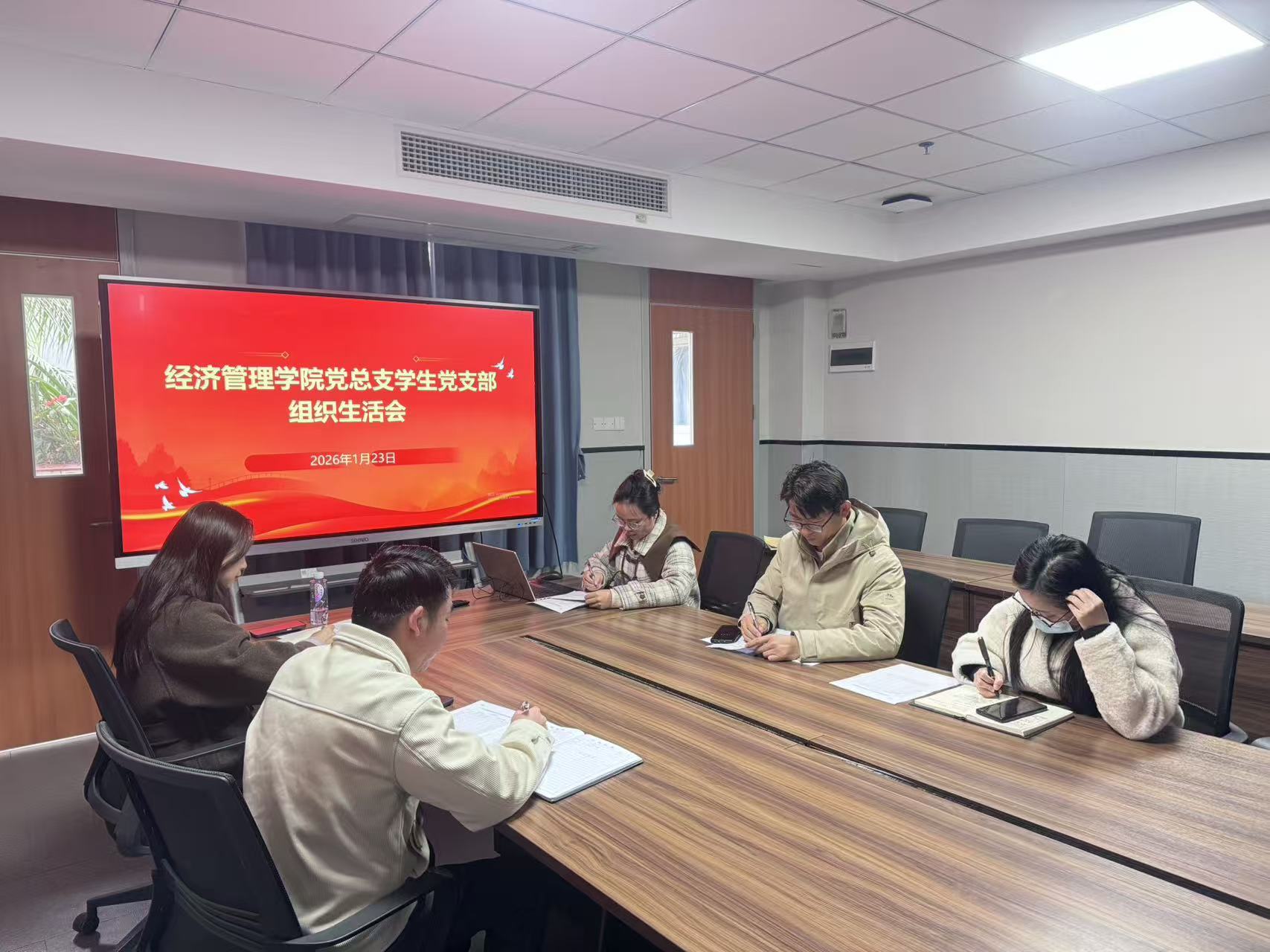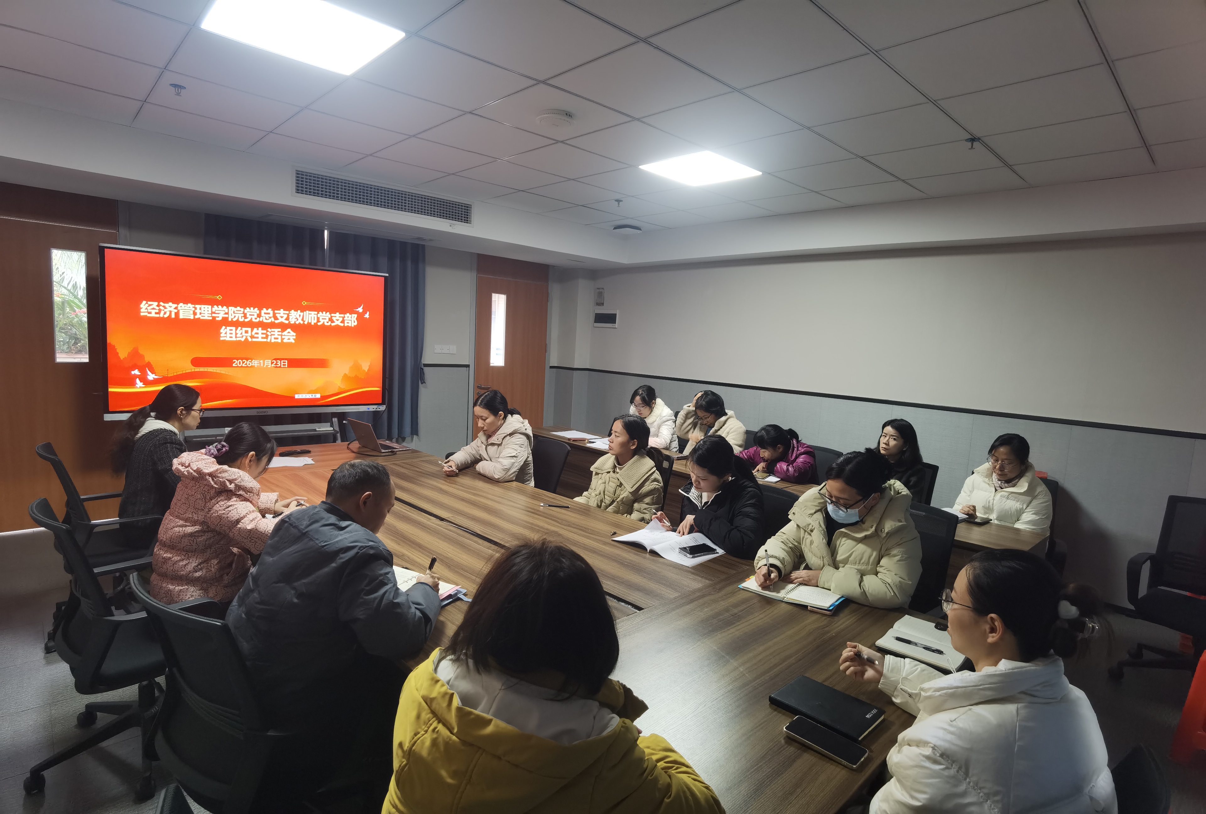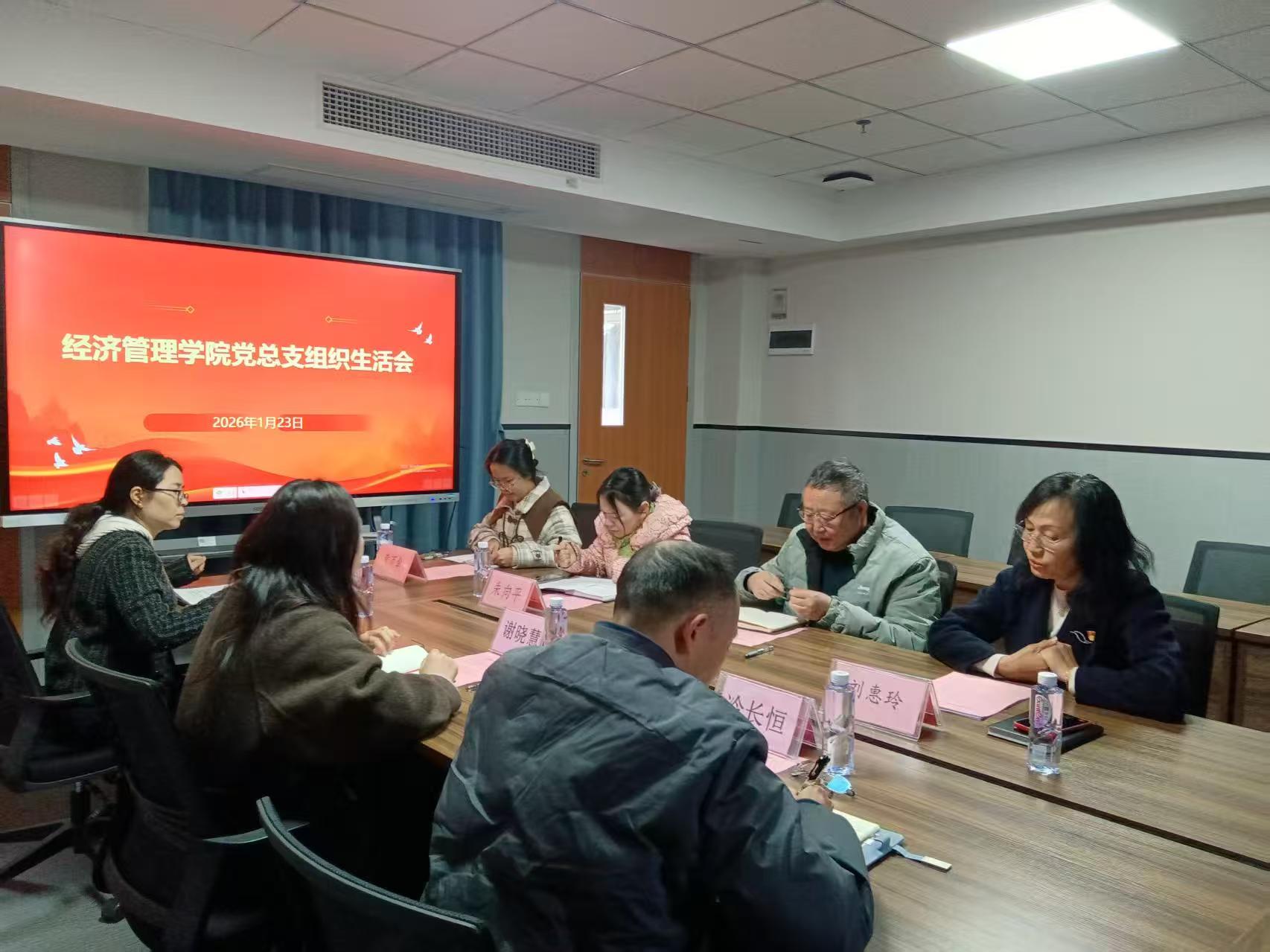 為深入學習貫徹習近平新時代中國特色社會主義思想和黨的二十屆四中全會精神,全面落實黨中央全面從嚴治黨部署及學校黨委工作要求,切實加強黨組織建設和黨員干部黨性錘煉,2026年1月23日,經(jīng)濟管理學院黨總支在西一教學樓613會議室召開2025年度專題組織生活會。校黨委辦公室主任梁德君同志蒞臨指導,學院黨總支委員參加會議,會議由黨總支書記劉惠玲同志主持。