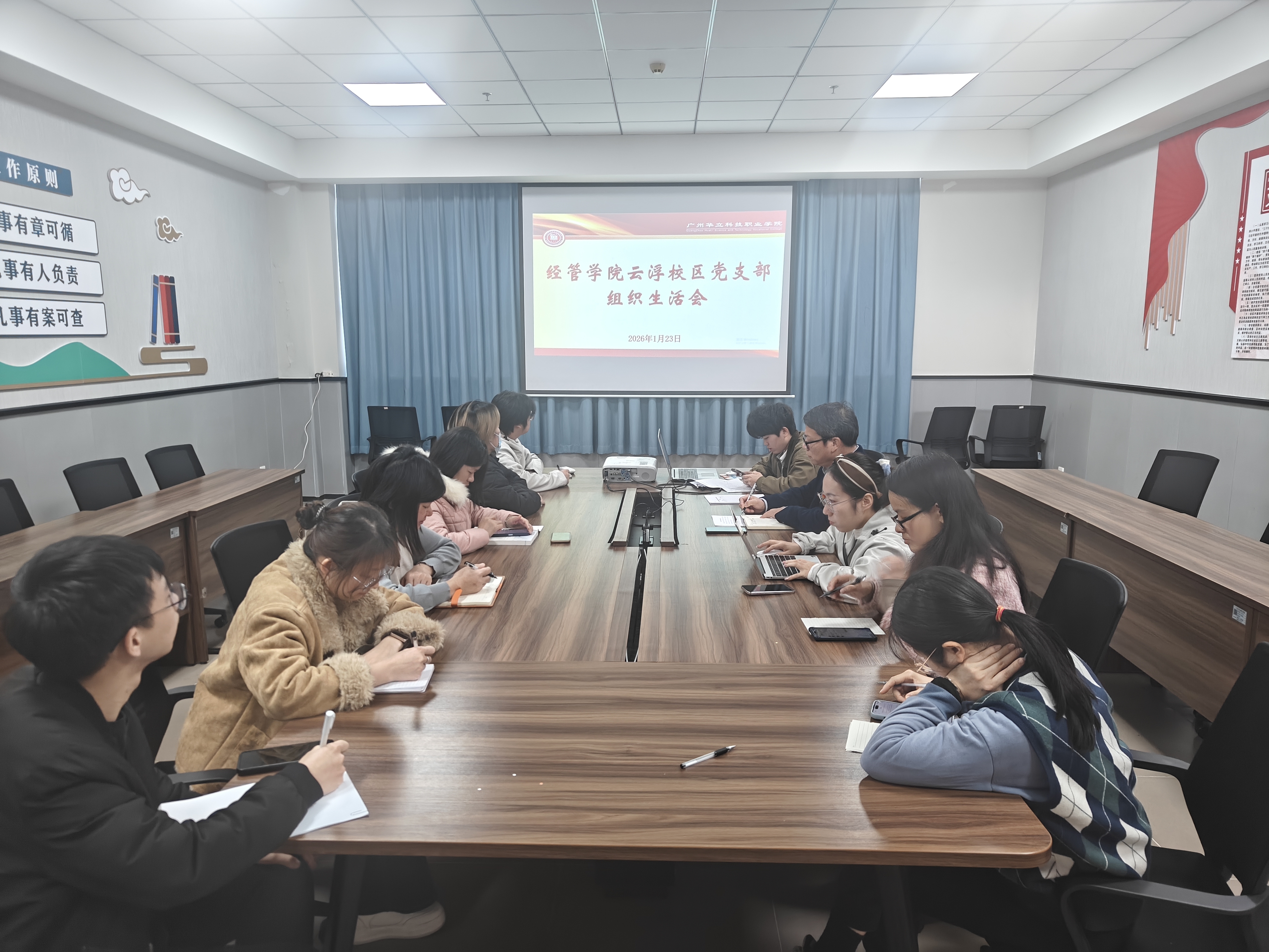 當日下午,經(jīng)濟管理學院教師黨支部、學生黨支部及云浮黨支部分別召開支部組織生活會。各支部黨員緊密圍繞黨性修養(yǎng)、履職擔當、先鋒模范作用發(fā)揮等方面開展批評與自我批評,并結合崗位實際提出改進措施。各支部會議程序規(guī)范、內(nèi)容扎實,進一步強化了基層黨組織的凝聚力和戰(zhàn)斗力。