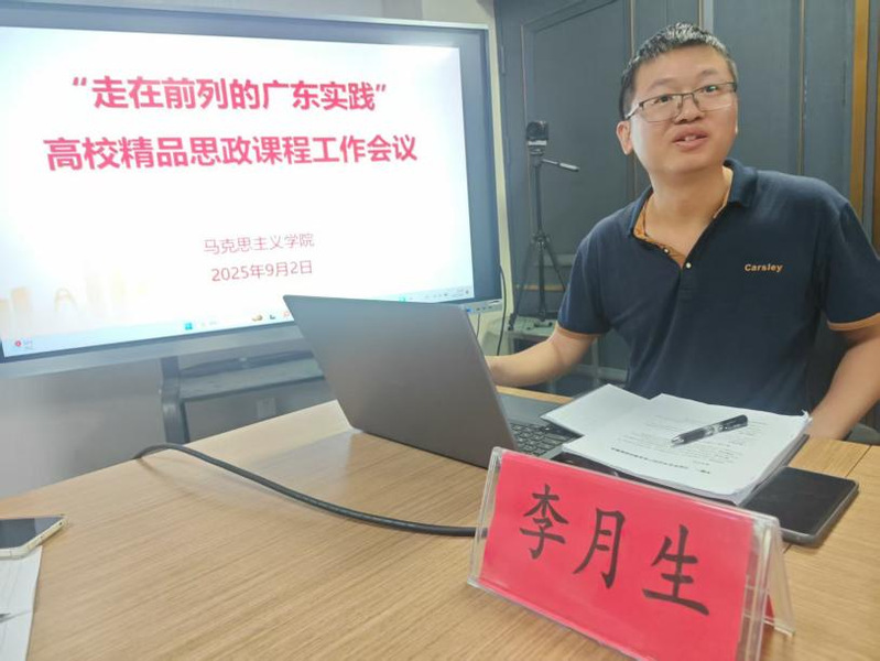 首先,參加線(xiàn)下培訓(xùn)的李月生副教授作專(zhuān)題分享。他結(jié)合近日參加由廣東省教育廳主辦的“走在前列的廣東實(shí)踐”高校精品思政課程骨干教師培訓(xùn)班的學(xué)習(xí)經(jīng)歷與心得體會(huì),從“學(xué)了什么”“悟了什么”“怎么去用”三個(gè)方面做了匯報(bào)。