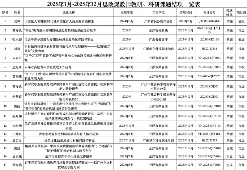 2025年度思政課教師教研、科研課題結(jié)項(xiàng)一覽表
