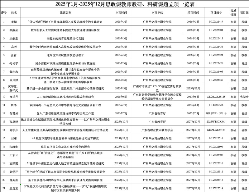 2025年度思政課教師教研、科研課題立項(xiàng)一覽表
