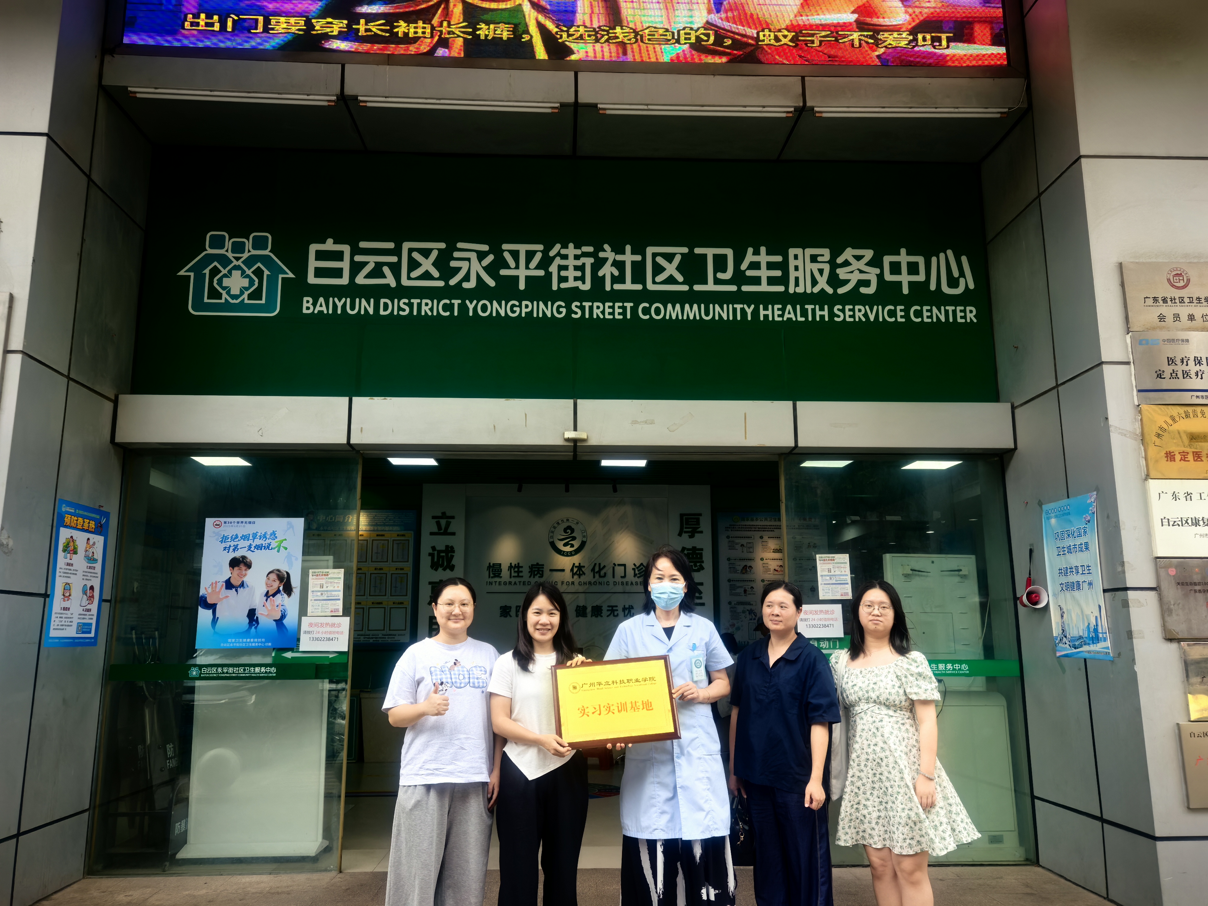 下午,代表團(tuán)前往了白云區(qū)永平街社區(qū)衛(wèi)生服務(wù)中心并進(jìn)行了校外實(shí)踐基地授牌儀式,在院方工作人員的陪同下,參觀了醫(yī)院的治未病中心等實(shí)習(xí)場(chǎng)所,深入了解實(shí)習(xí)生的工作環(huán)境和帶教情況。雙方圍繞實(shí)習(xí)生培養(yǎng)、課程共建及未來(lái)合作方向進(jìn)行了深入探討。