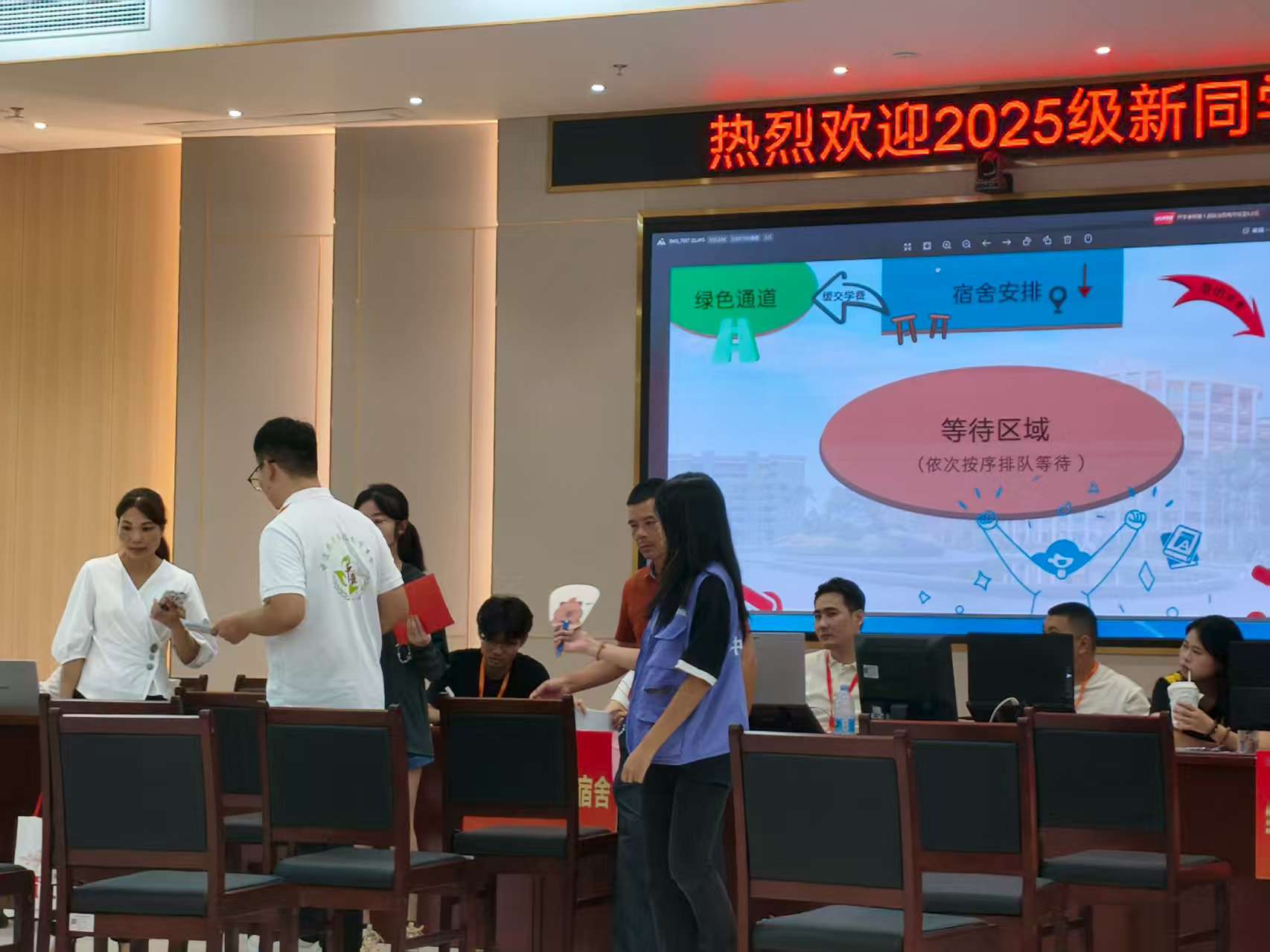 迎新現(xiàn)場,各項工作有條不紊。報到點前,志愿者們以最飽滿的熱情迎接新同學(xué)的到來。志愿者們分工明確,他們耐心細(xì)致地解答疑問、辦理手續(xù)、引導(dǎo)路線,幫助新生們快速完成身份核驗、住宿登記、專業(yè)咨詢等各項入學(xué)流程,學(xué)校還設(shè)立了“綠色通道”服務(wù)站,為家庭經(jīng)濟(jì)困難學(xué)生提供一站式咨詢服務(wù),確保每位學(xué)子都能無憂入學(xué)。
