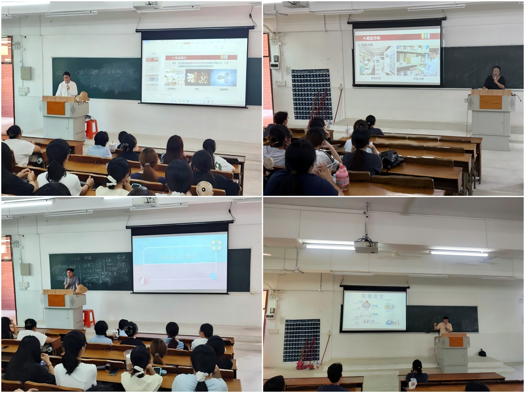 藥學(xué)專業(yè):9月3日,藥學(xué)專業(yè)新生教育座談會(huì)隆重召開。中醫(yī)藥學(xué)院專職教師以及2025級(jí)藥學(xué)專業(yè)全體150名新生共同參會(huì)。教師們系統(tǒng)介紹了藥學(xué)專業(yè)核心課程體系,包括藥物化學(xué)、藥理學(xué)、藥劑學(xué)、藥物分析等主干學(xué)科,詳細(xì)說(shuō)明了教學(xué)資源、實(shí)驗(yàn)室配置及校企合作項(xiàng)目。實(shí)訓(xùn)室老師重點(diǎn)講解了化學(xué)品使用規(guī)范、儀器操作流程及應(yīng)急處理措施,強(qiáng)調(diào)實(shí)訓(xùn)安全的重要性。座談會(huì)內(nèi)容充實(shí)、氣氛熱烈,為新生明確了學(xué)習(xí)目標(biāo)和職業(yè)規(guī)劃方向。