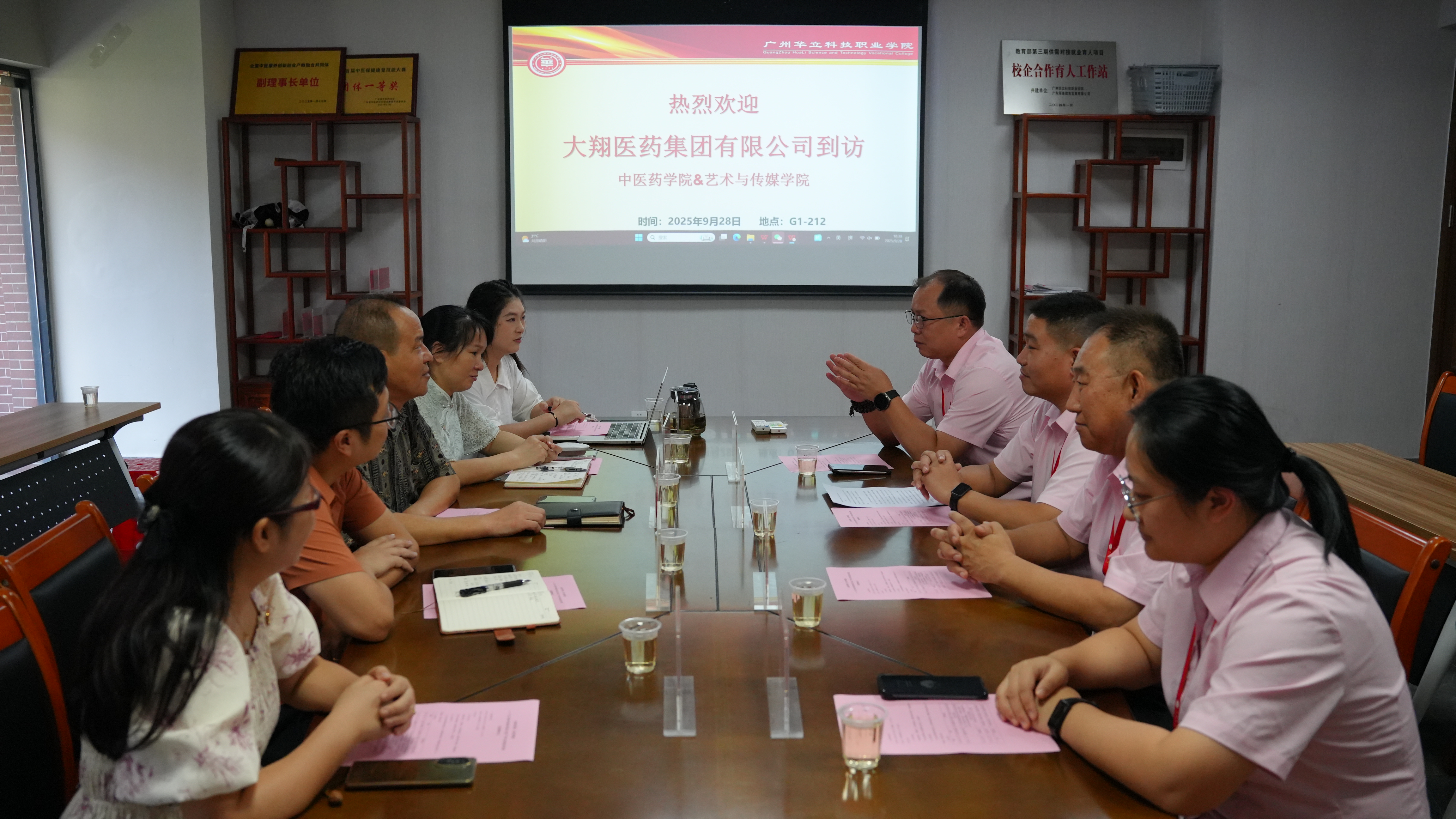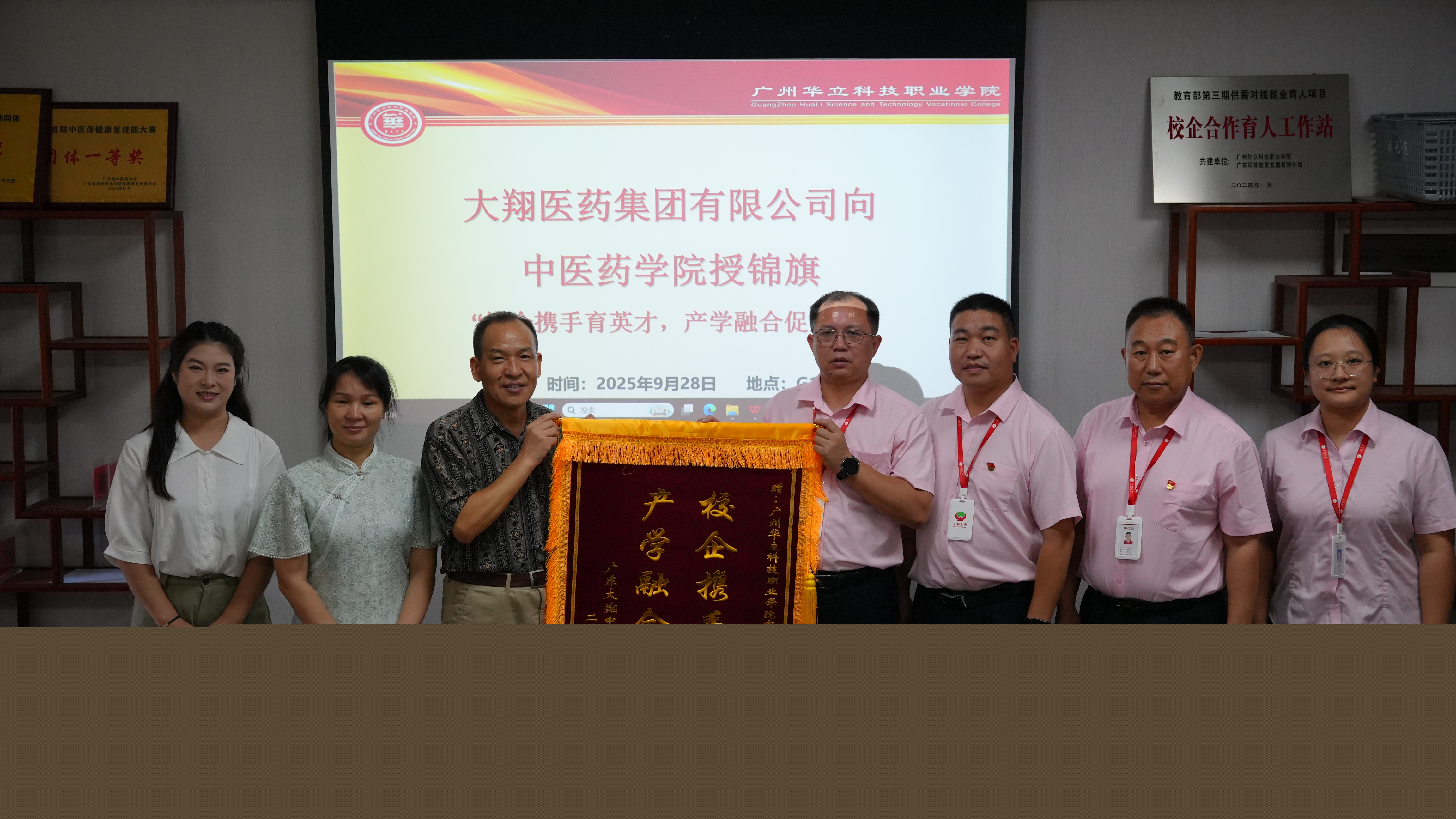 9月28日,廣東大翔中藥制藥有限公司多位領(lǐng)導(dǎo)一行專程到訪我校,就此前與我校中醫(yī)藥學(xué)院、藝術(shù)與傳媒學(xué)院達(dá)成的校企合作成果進(jìn)行回訪交流,并舉行贈(zèng)旗儀式,表達(dá)對(duì)校方在合作中鼎力支持的誠摯謝意。