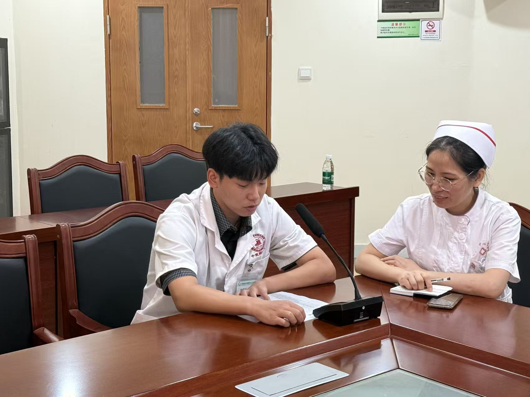 在實(shí)習(xí)生分享環(huán)節(jié),實(shí)習(xí)生組長(zhǎng)作為代表發(fā)言,暢談實(shí)習(xí)收獲。他們結(jié)合在內(nèi)科、外科、針灸科、藥房等不同科室的輪轉(zhuǎn)經(jīng)歷,分享了如何將所學(xué)知識(shí)與現(xiàn)代醫(yī)學(xué)診療技術(shù)相融合的實(shí)踐案例。同學(xué)們對(duì)醫(yī)院提供的豐富臨床資源和帶教老師的傾囊相授表示感謝,同時(shí)也對(duì)實(shí)習(xí)輪轉(zhuǎn)安排、技能操作訓(xùn)練頻率等提出了建設(shè)性意見,希望能在有限的實(shí)習(xí)期內(nèi)接觸到更多樣的病種。