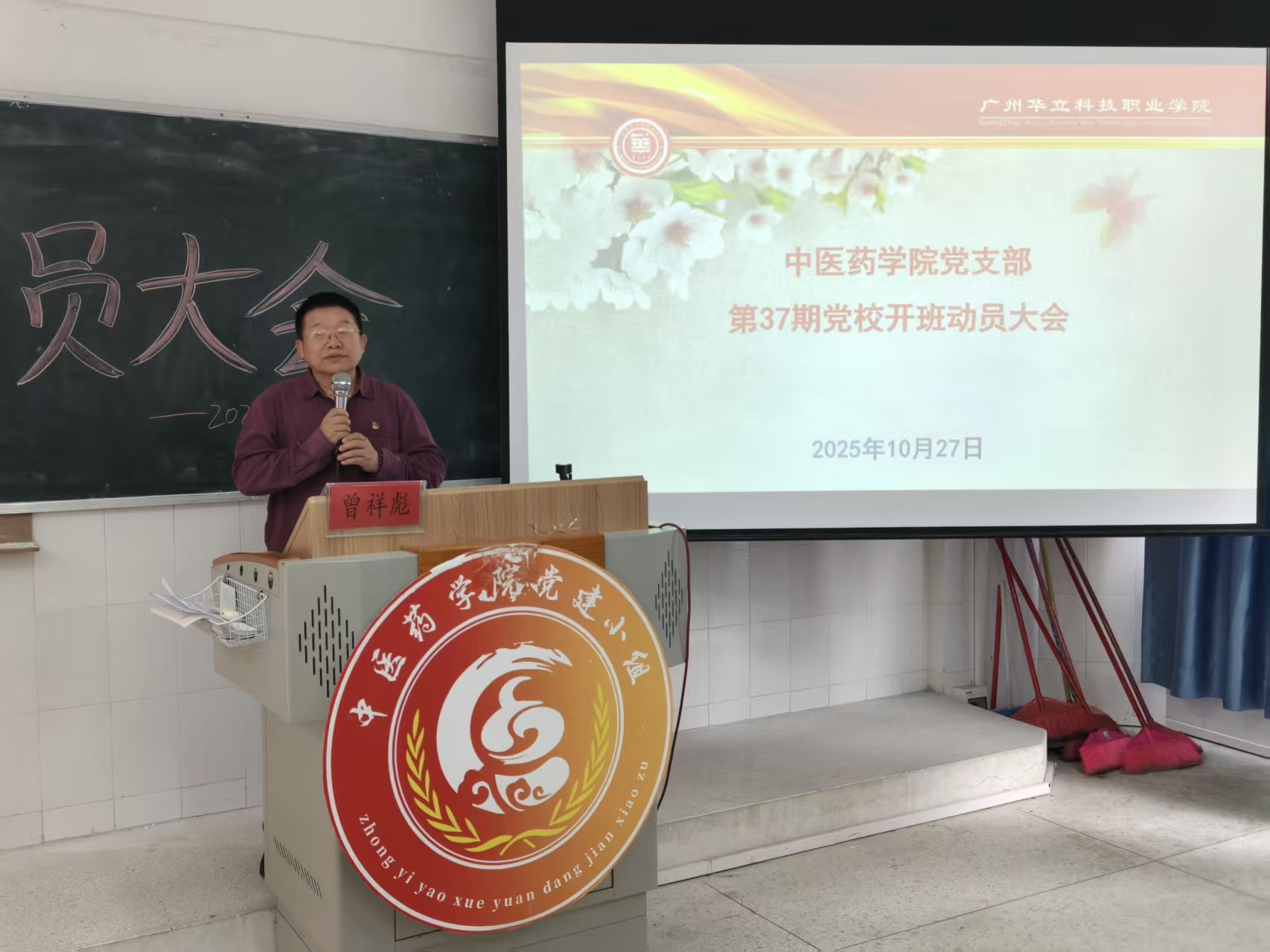 2025年10月27日中午,中醫(yī)藥學(xué)院直屬黨支部在黨校正式開班前,在西二201教室舉行了莊重而熱烈的開班動(dòng)員大會(huì)。學(xué)院黨支部書記曾祥彪、支部組織委員鄭潔儀老師出席會(huì)議并作動(dòng)員講話,全體39名經(jīng)過層層選拔的入黨積極分子參加了會(huì)議。