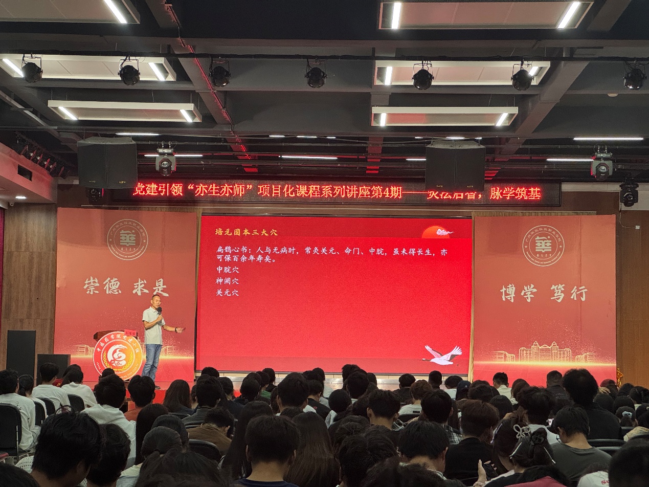 2025年11月6日,圖書館八樓暖意融融、座無虛席,中醫(yī)藥學(xué)院黨建小組聯(lián)合中醫(yī)藥應(yīng)用研究所精心打造的黨建引領(lǐng)“亦生亦師”項(xiàng)目化課程系列講座在此順利啟幕。作為中華優(yōu)秀傳統(tǒng)文化的璀璨瑰寶,中醫(yī)藥文化承載著千年先民的健康智慧,而艾灸與脈診更是其中歷經(jīng)歲月沉淀的核心技藝。本次講座以黨建為引領(lǐng),搭建起“師生共建、教學(xué)相長”的交流平臺,旨在讓青年學(xué)子近距離感受中醫(yī)藥的獨(dú)特魅力,傳承經(jīng)典、啟迪新知,為中醫(yī)藥文化的當(dāng)代傳播注入青春活力。