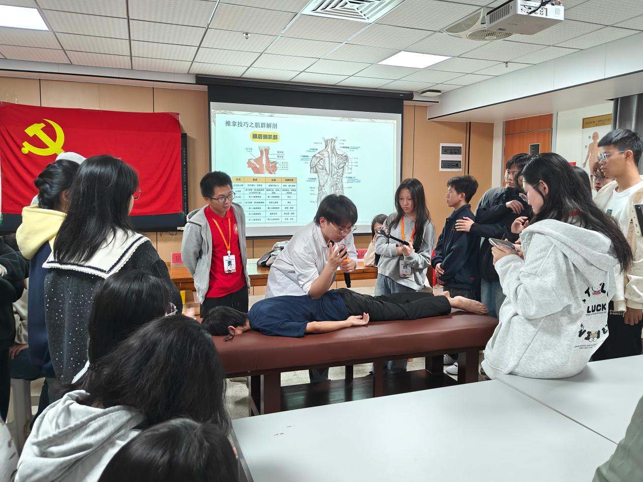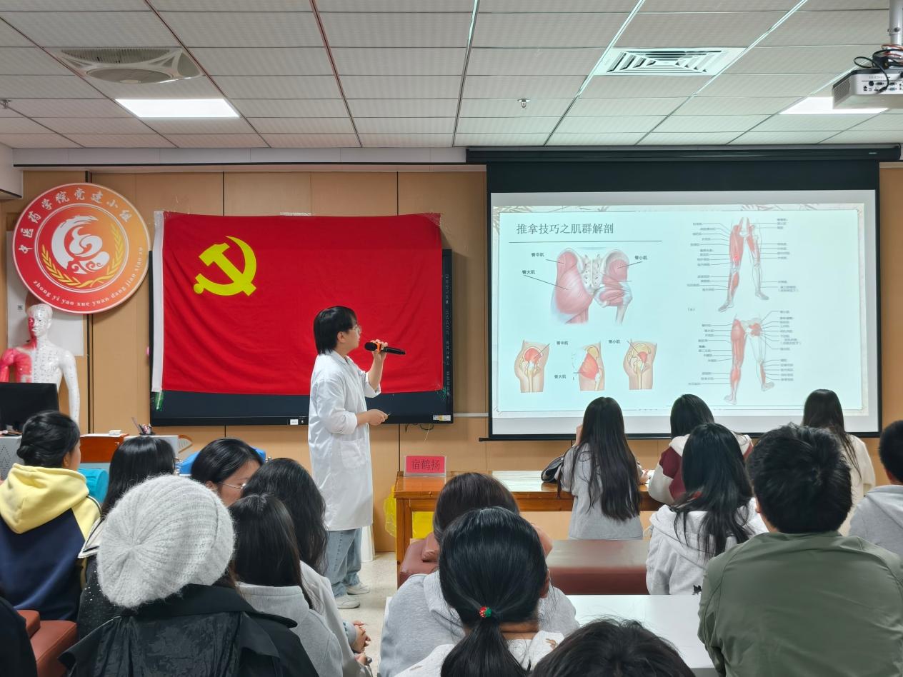 2025年11月18日,由中醫(yī)藥學(xué)院黨建小組與中醫(yī)藥應(yīng)用研究所聯(lián)合主辦的“亦生亦師”項(xiàng)目化課程系列講座第5期,在西二教學(xué)樓104實(shí)訓(xùn)室順利開講。本次講座以“中醫(yī)推拿臨床技巧”為核心主題,特邀中醫(yī)藥研究所講師團(tuán)成員宿鶴揚(yáng)擔(dān)任主講人,通過(guò)“理論精講+實(shí)操演示”的沉浸式教學(xué)模式,讓在場(chǎng)同學(xué)深度感受中醫(yī)技藝的科學(xué)性與實(shí)用性。