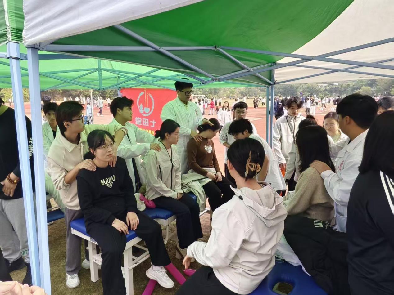 20251210日至11日,學(xué)校第十四屆田徑運(yùn)動(dòng)會(huì)期間,中醫(yī)藥學(xué)院黨建小組聯(lián)合中醫(yī)藥協(xié)會(huì),以“健運(yùn)逐光,理療護(hù)航主題在田徑場(chǎng)開(kāi)展暖心理療志愿服務(wù)活動(dòng)?;顒?dòng)兩天累計(jì)組織近100人次志愿者參與,依托專業(yè)中醫(yī)藥技術(shù)為校運(yùn)會(huì)參與者提供全方位理療支持,涵蓋運(yùn)動(dòng)員運(yùn)動(dòng)損傷應(yīng)急處理、疲勞緩解等內(nèi)容?,F(xiàn)場(chǎng)搭建一站式理療服務(wù)中心,由中醫(yī)藥專業(yè)師生團(tuán)隊(duì)分時(shí)段、分區(qū)域精準(zhǔn)服務(wù),既保障了賽事后勤,也為師生搭建了實(shí)踐平臺(tái),充分體現(xiàn)了學(xué)校對(duì)師生健康的高度重視與人文關(guān)懷。