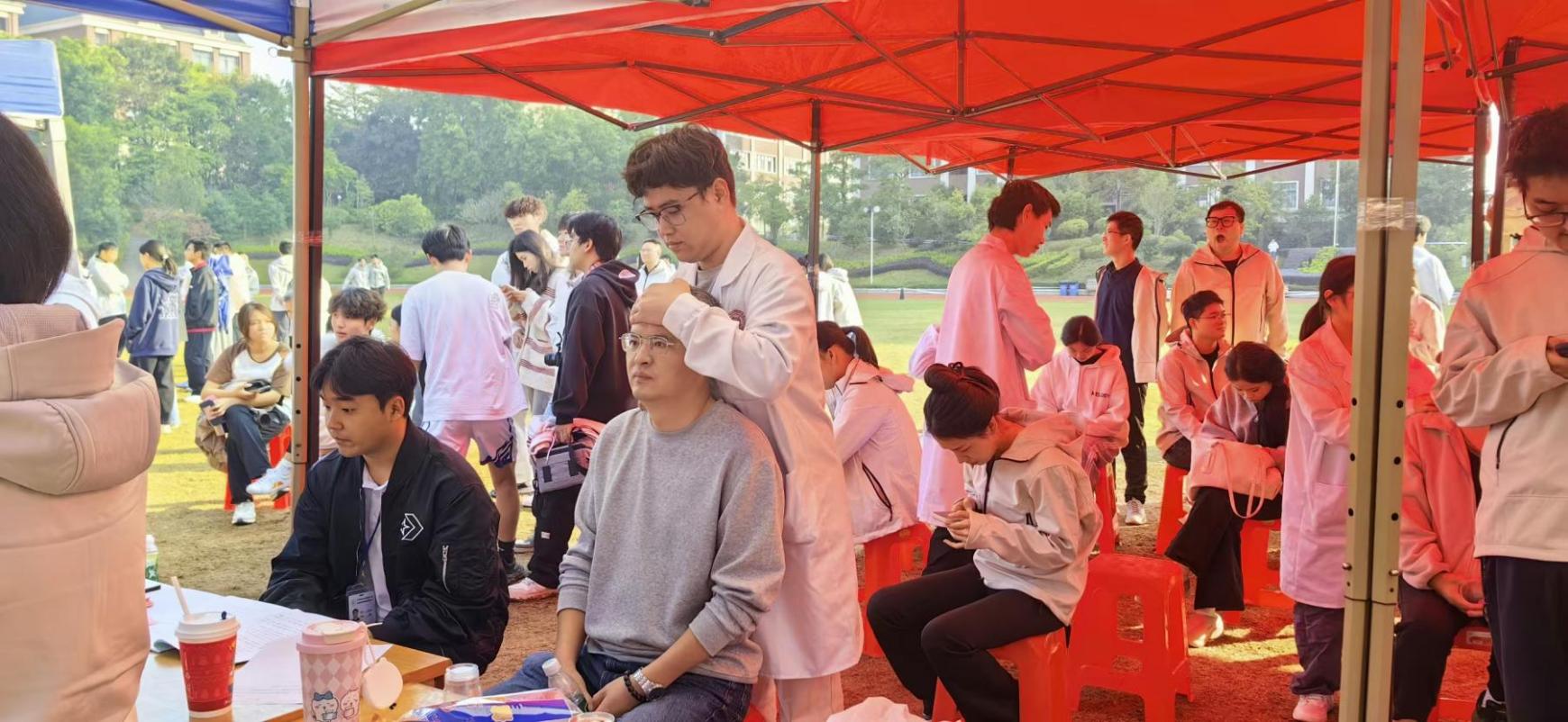 師生們熱情高漲,紛紛駐足體驗。剛結(jié)束長跑項目的同學(xué)在接受推拿后直呼“輕松不少”,觀賽的老師也借著間隙咨詢?nèi)粘pB(yǎng)生的小妙招。大家在感受中醫(yī)獨特魅力的同時,也對實用的保健知識有了更深入的了解。